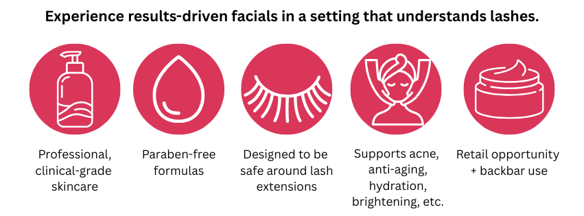 Whether you’re looking for an anti-aging facial, acne treatment, or a hydrating glow boost, our skincare services are designed to complement your lash services in one convenient appointment. Say Hello to a Lash-Safe glow